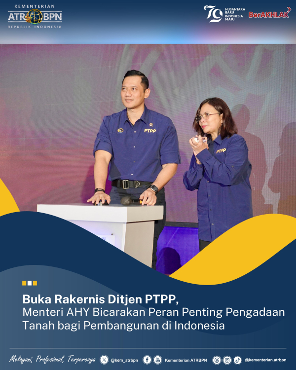 Jakarta - Menteri Agraria dan Tata Ruang/Kepala Badan Pertanahan Nasional (ATR/BPN), Agus Harimurti Yudhoyono (AHY) menyebut bahwa peran Pengadaan Tanah begitu besar dalam pembangunan, baik untuk p... Selengkapnya