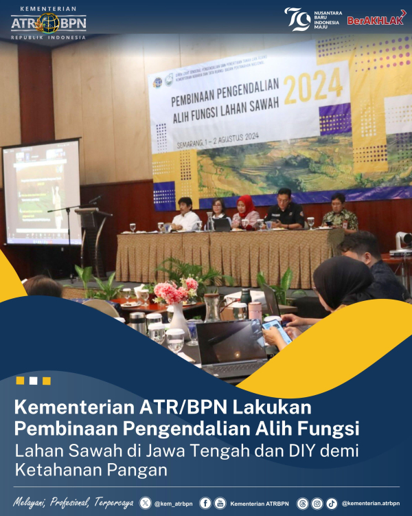 Semarang - Kementerian Agraria dan Tata Ruang/Badan Pertanahan Nasional (ATR/BPN) berupaya mewujudkan ketahanan pangan melalui program Lahan Sawah yang Dilindungi (LSD). Menteri ATR/Kepala BPN, Agu... Selengkapnya