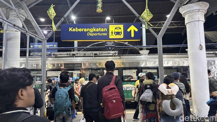 Jakarta - Di hari pertama dan kedua Lebaran 2025, sekitar 75.483 pemudik yang menggunakan kereta api di wilayah Daop 8 Surabaya.
