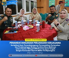 [Semarang, 24 November 2025] – Kantor Wilayah Badan Pertanahan Nasional (BPN) Provinsi Jawa Tengah hari ini menggelar acara Penandatanganan Perjanjian Kerjasama dengan Komando Daerah Militer ... Selengkapnya