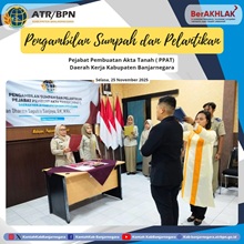 Pada hari ini, Selasa, 25 November 2025, bertempat di Aula Kantor Pertanahan Kabupaten Banjarnegara, telah dilaksanakan Pengambilan Sumpah dan Pelantikan Pejabat Pembuat Akta Tanah (PPAT) Daerah Ke... Selengkapnya
