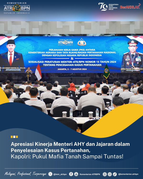 Jakarta - Kepala Kepolisian Republik Indonesia (Polri), Listyo Sigit Prabowo mengapresiasi kerja keras Menteri Agraria dan Tata Ruang/Kepala Badan Pertanahan Nasional (ATR/BPN), Agus Harimurti Yudh... Selengkapnya
